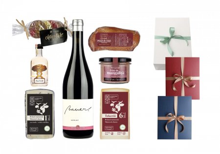 Cadouri gastronomice cu vinuri, brânzeturi, specialități carne și dulceață