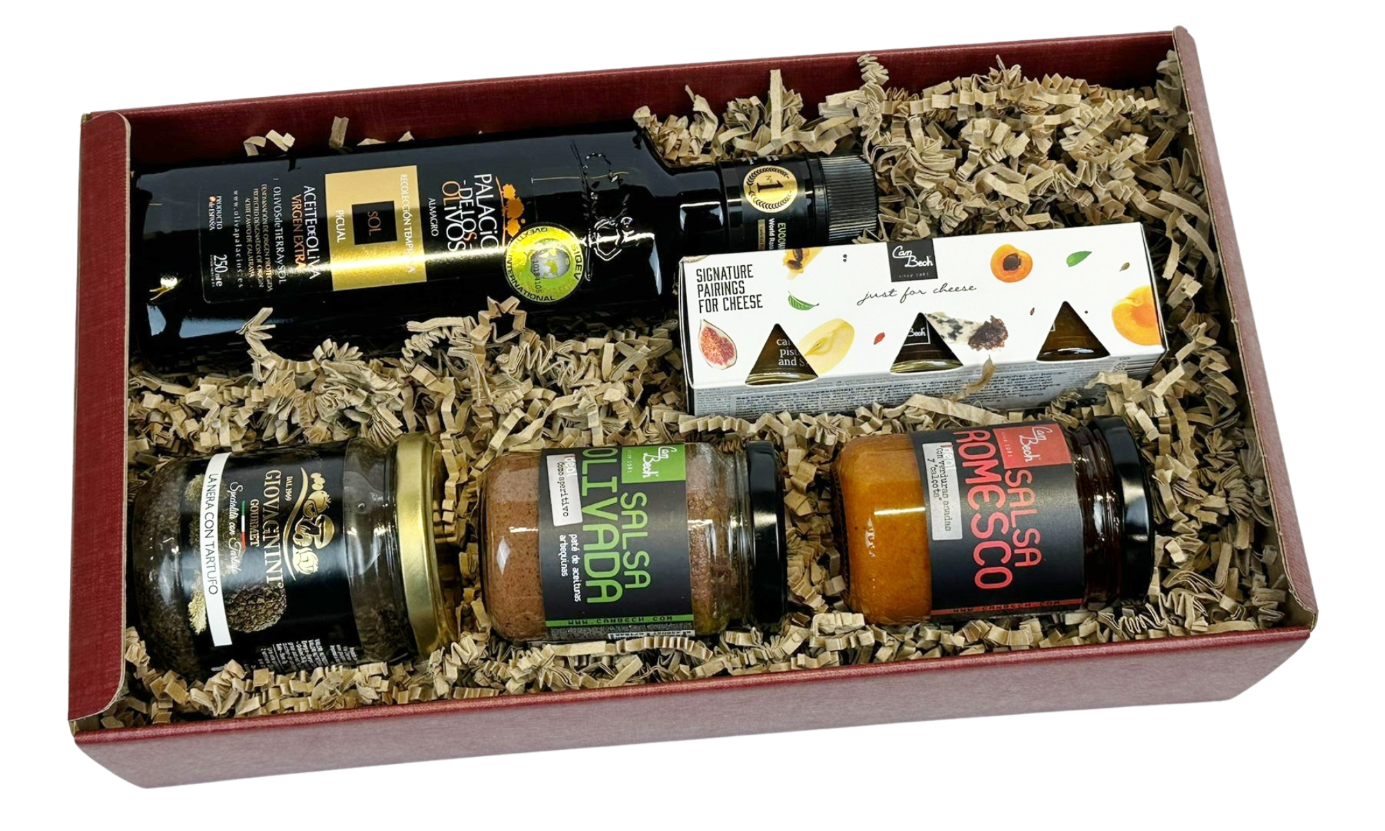 Răsfață simțurile cu un cadou rafinat inspirat din gastronomia mediteraneană autentică. Fiecare produs a fost ales cu grijă pentru a oferi o experiență culinară completă, cu arome intense și texturi sofisticate, perfecte pentru aperitive elegante, prânzuri gustoase sau momente de răsfăț gourmet. Este un dar ideal pentru pasionații de gastronomie fină, parteneri de afaceri sau persoane dragi.
