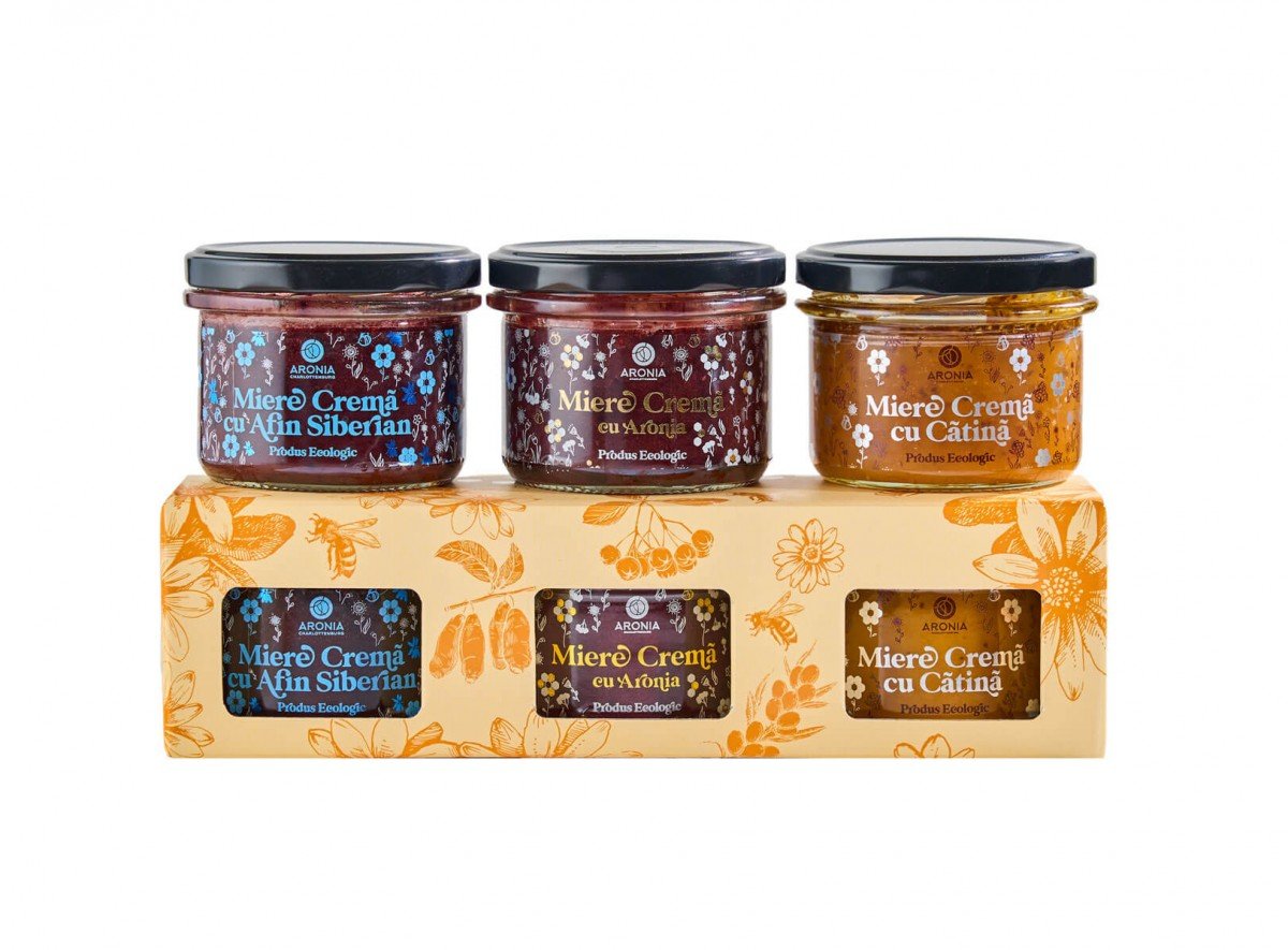 Cutie cadou 3 tipuri de miere polifloră cu Aronia, Cătină și cu Afin Siberian