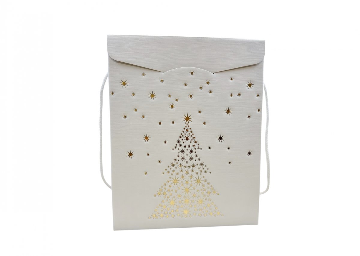 Cutie din carton detaliu Crăciun și mânere din sfoară, pentru 4 sticle cu vin, sau pentru panettone și produse diverse.