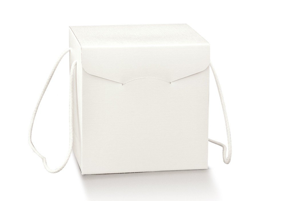 Cutie din carton imprimat (alb fibra) și capac rabatabil și mânere textile.