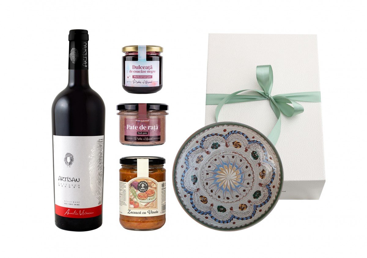 Cadouri gastronomice cu vinuri, brânzeturi, specialități carne și dulceață