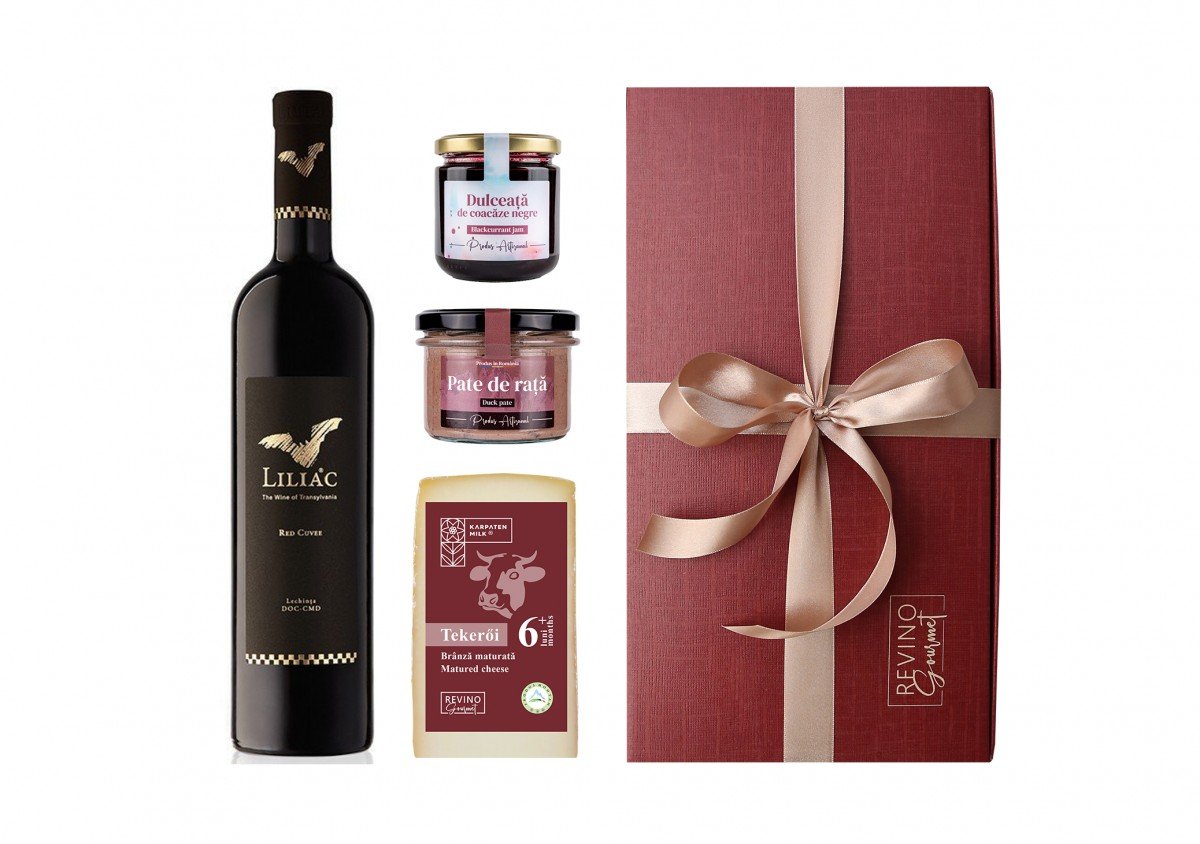 O combinație elegantă de vin și delicatese, ideală pentru sărbători, reuniuni festive sau cadouri corporate.