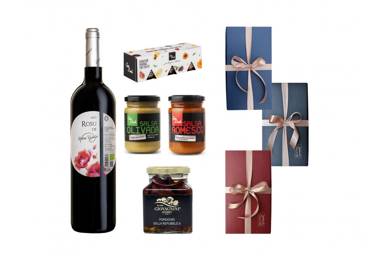 Cadouri gastronomice cu vinuri, brânzeturi, specialități carne și dulceață