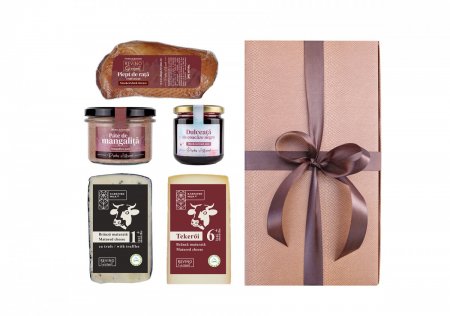 3 pate mixt / 1 salam mangaliță / 1 piept de rață / 1 cutie cadou